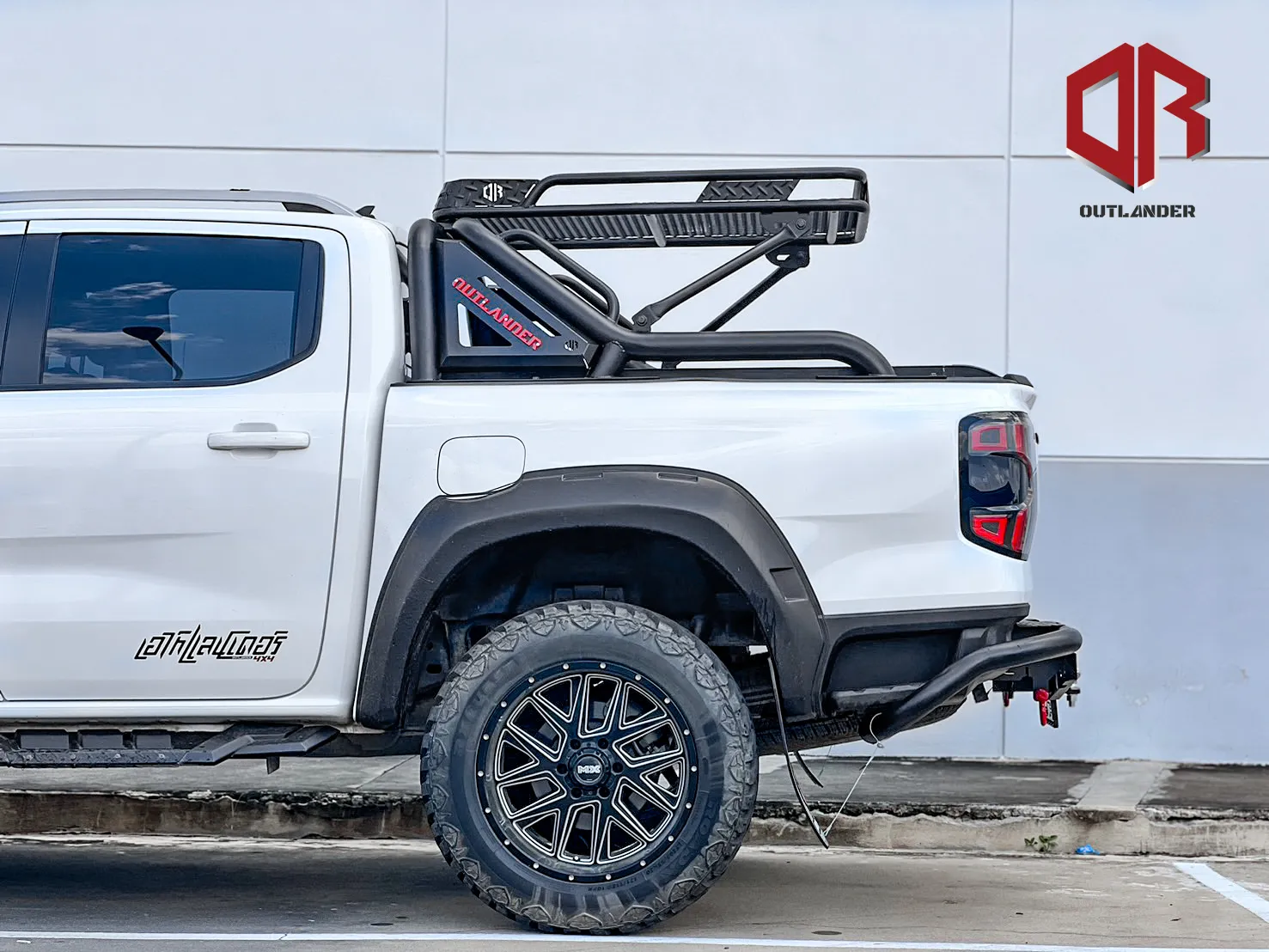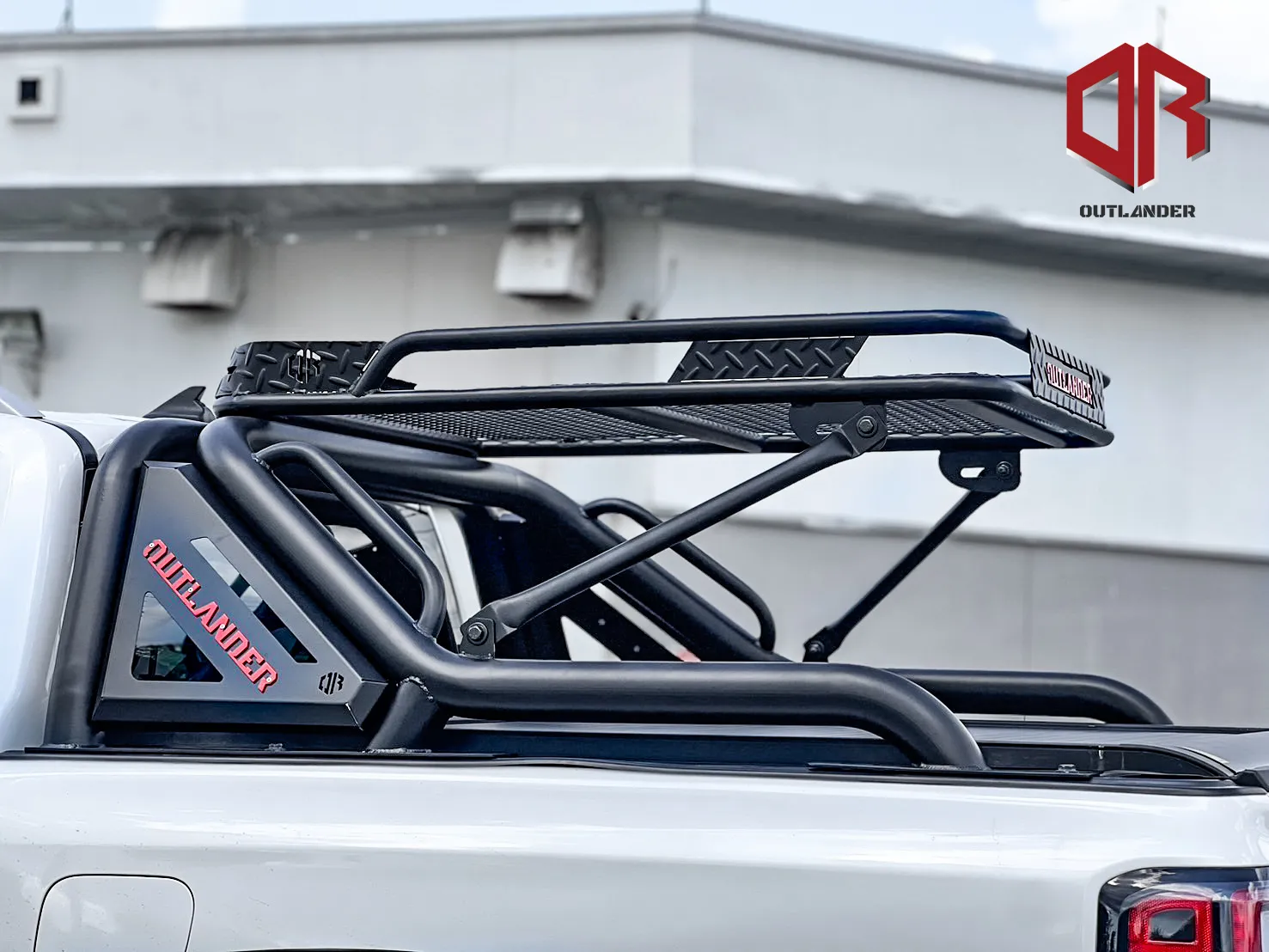 แร็ค ที่ออกแบบมาเฉพาะกับโรบาร์ทุกรุ่นของ OUTLANER ทั้งแขนยาว และโรบาร์ทรงเอ โดยเราเน้นดีไซน์ที่เรียบง่าย มีการตัดเลเซอร์โลโก้ และชื่อแบรนด์เอาท์แลนเดอร์อยู่บนตัวแร็ค ผ่านกระบวนการอบสี (Power coating) สีดำเฉพาะของOUTLANDER สำหรับพื้นที่ของกระบะคุณเพื่อการขนสัมภาระ ที่รับน้ำหนักได้ถึง 200 กิโลกรัม